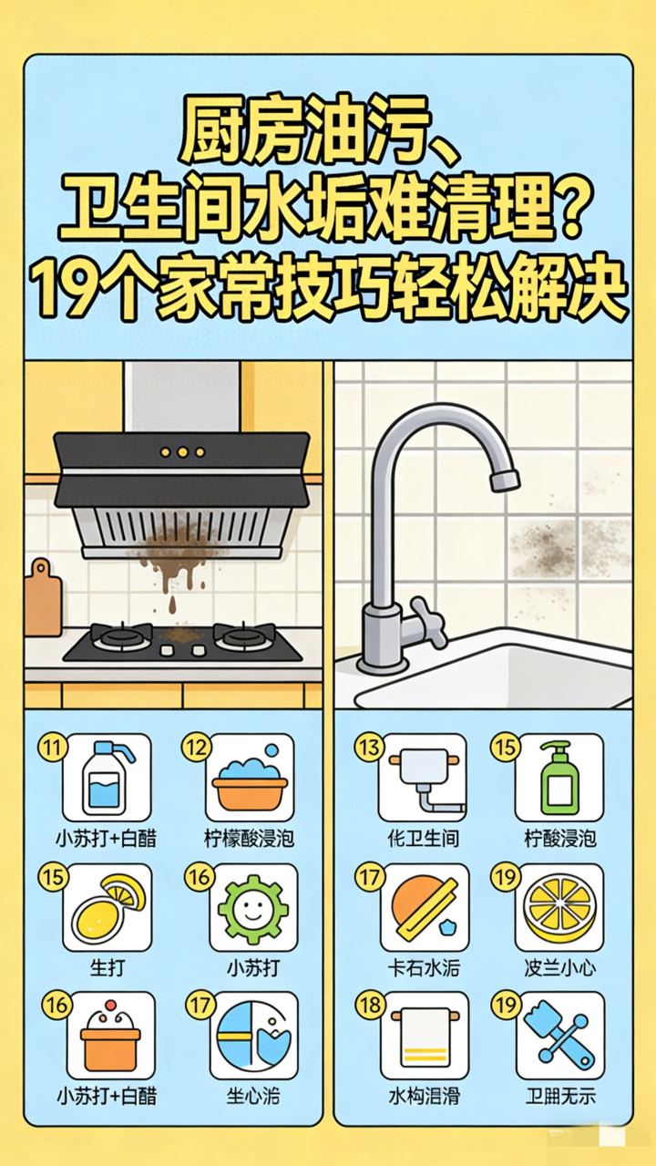 亚博体育 厨房油污、卫生间水垢难算帐? 19个家常手段泛泛解决。