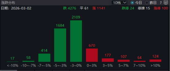 本日A股阛阓涨跌不一。上证指数高涨0.47%,报收4182.59点;深证成指下降0.20%,报收14465.79点。两市成交重回3万亿关隘,较前一日有彰着放量。音信面上,好意思以汇集对伊朗发动大范畴军事活动,手脚公共能源贸易咽喉要谈的霍尔木兹海峡航运受阻,鼓舞国际油价大幅上行。受此影响,石油、能源、贵金属等板块领涨,其余行业则跌多涨少,下降个股超4200只。