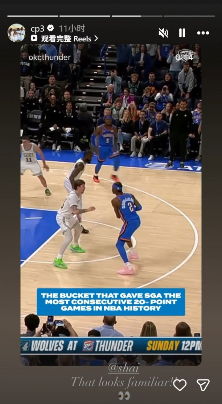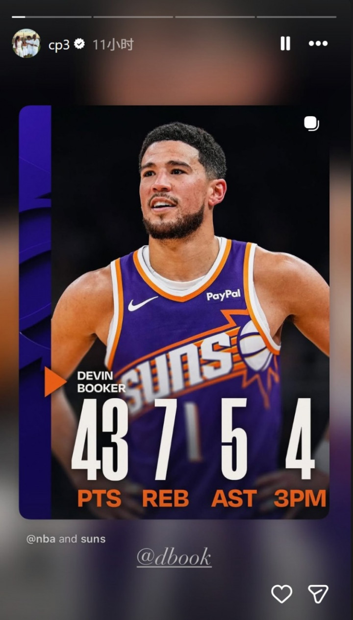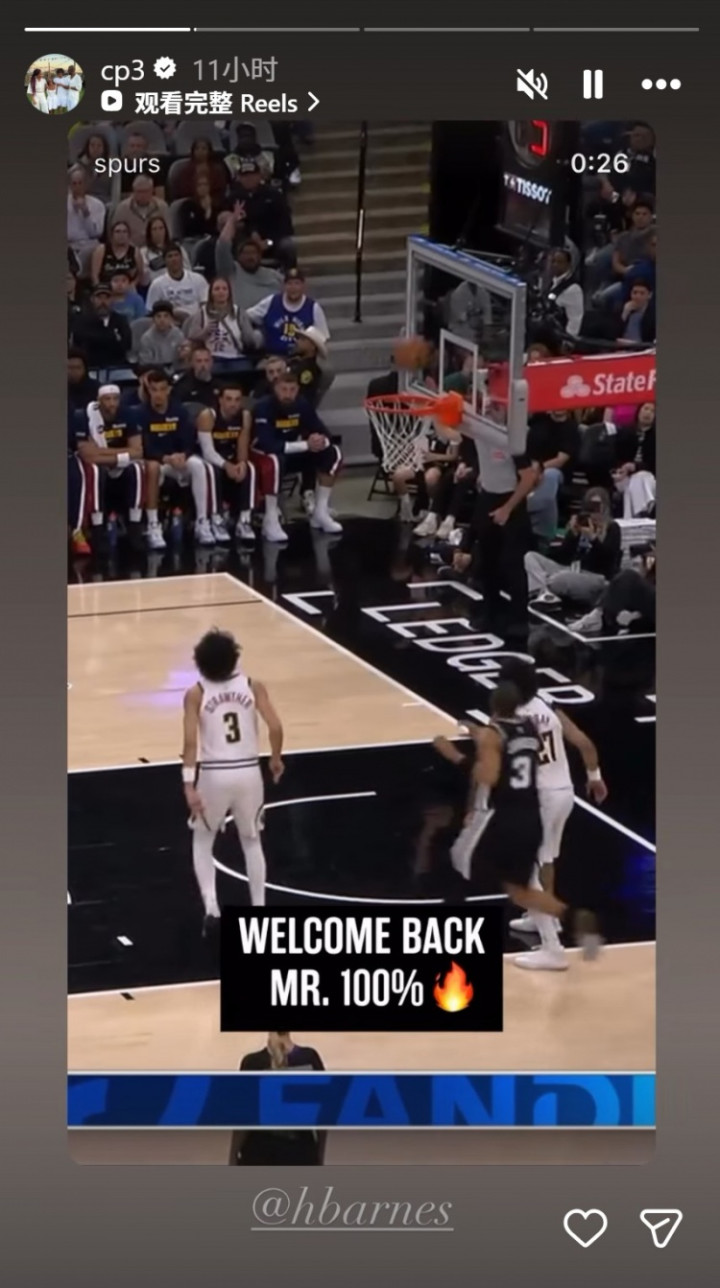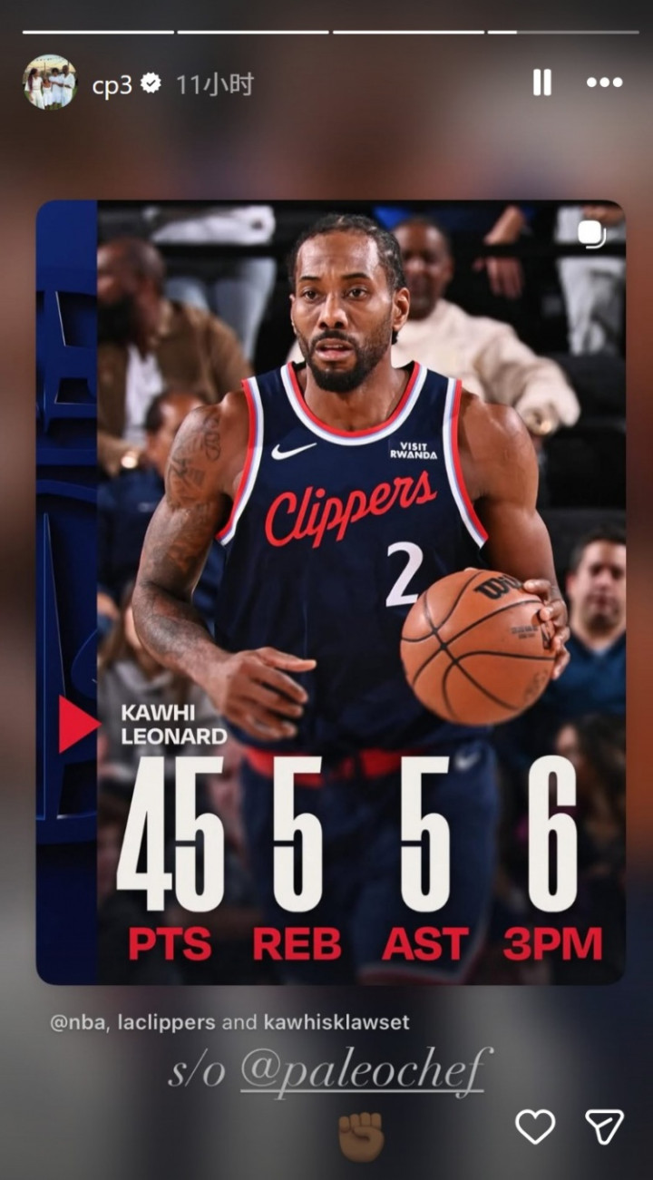 亚博体育 闲不住? 保罗INS转发太阳/马刺/雷霆/快船四个老东家的比赛动态