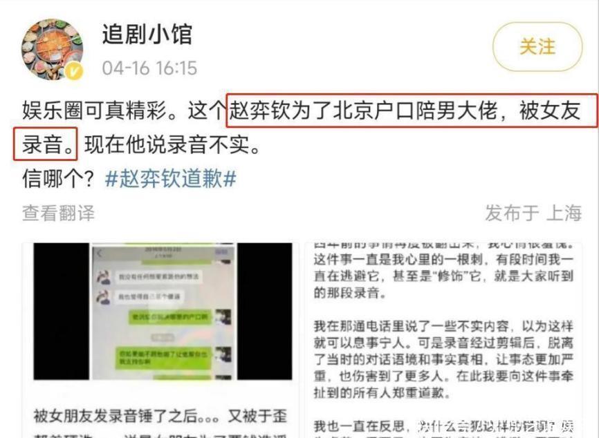 那句老话果然少量齐没错,“多语言容易惹祸”。赵弈钦没思到,女一又友竟然悄悄录了音,还截了聊天的图。