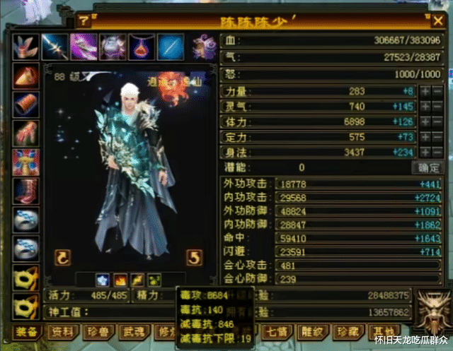 先看面板:血量38万,蓝量2.8万,掷中5.9万,秘密2.3万,亚搏app官方网站会心袭击481,会心矜重239,主毒袭击8684!