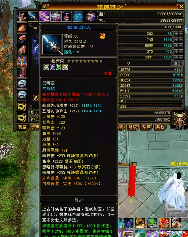 号主还作念了一个80级的深蓝八星枪棒:火玄毒三属性120,掷中、力量、身法、统统属性!