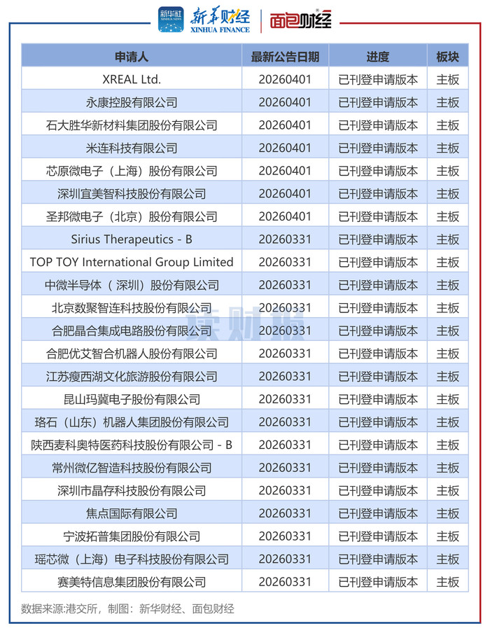 新华财经北京4月7日电新华财经和面包财经扣问员笔据香港交游所败露信息,对港股IPO列队及新上市企业进行了梳理统计。其中,港股IPO列队企业录取依据为审核景象为已刊登请求版块、已刊登聆讯后贵寓集。
