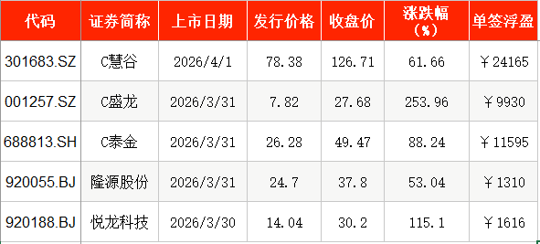 3月31日,慧谷新材(301683)在创业板挂牌上市,刊行价为78.38元/股,舍弃上市首日收盘,该股报126.71元/股,涨幅为61.66%。以收盘价筹谋,投资者中一签浮盈为2.42万元。
