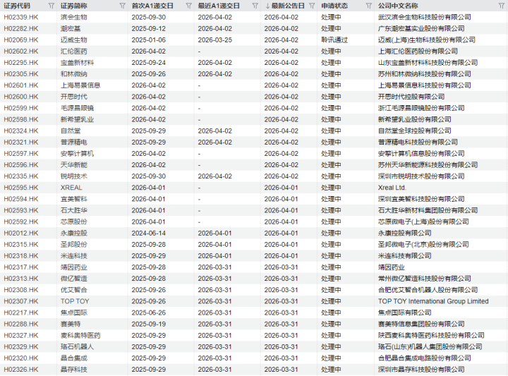 迈威(上海)生物科技股份有限公司、华勤时间股份有限公司等聆讯通过。珠海精实测控时间股份有限公司、利欧集团股份有限公司、安徽华恒生物科技股份有限公司等公司的港股肯求失效。