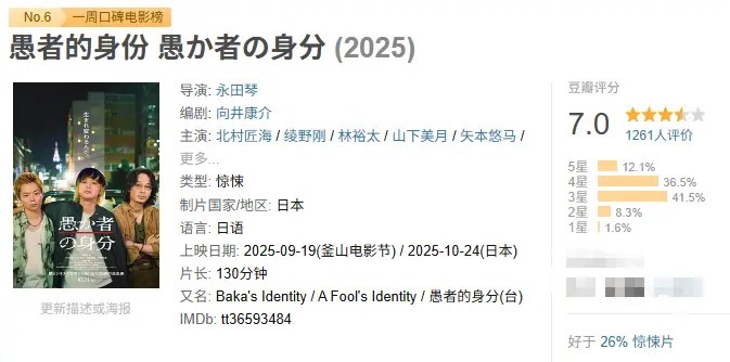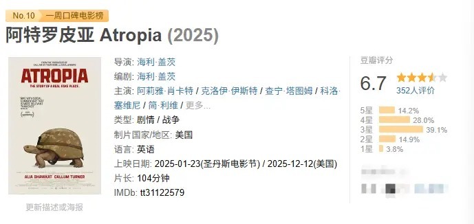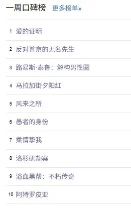 终末,如故例行附上一周豆瓣口碑榜的完整榜单: