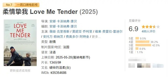 同期,一周豆瓣口碑榜如下。咱们通盘来看,这一周,又有哪些新的影片上榜吧。